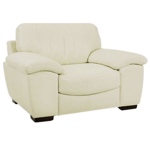 White Leather Oversized Chair. Dimensions: 55"W x 36"H x 38"D. It has a matching sofa and looks beautiful with our white ottomans, or add a splash of color and choose a contrasting ottoman.